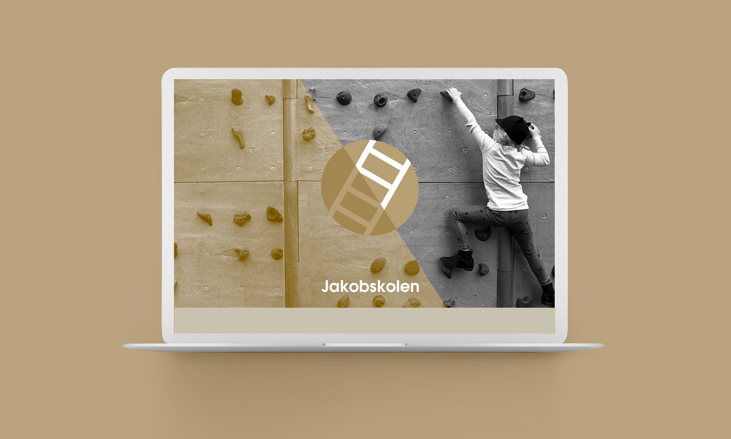 Jakobskolen er en kristen friskole. Det endelige valg faldt på Jakobsstigen, da en stige - ud over den kristne symbolik med stigen, der går helt op til himmelen - indikerer børns trinvise udvikling. Bemærk at stigen går fra mørket op i lyset, og at overgangen danner en skrå linje som er udnyttet i designet.