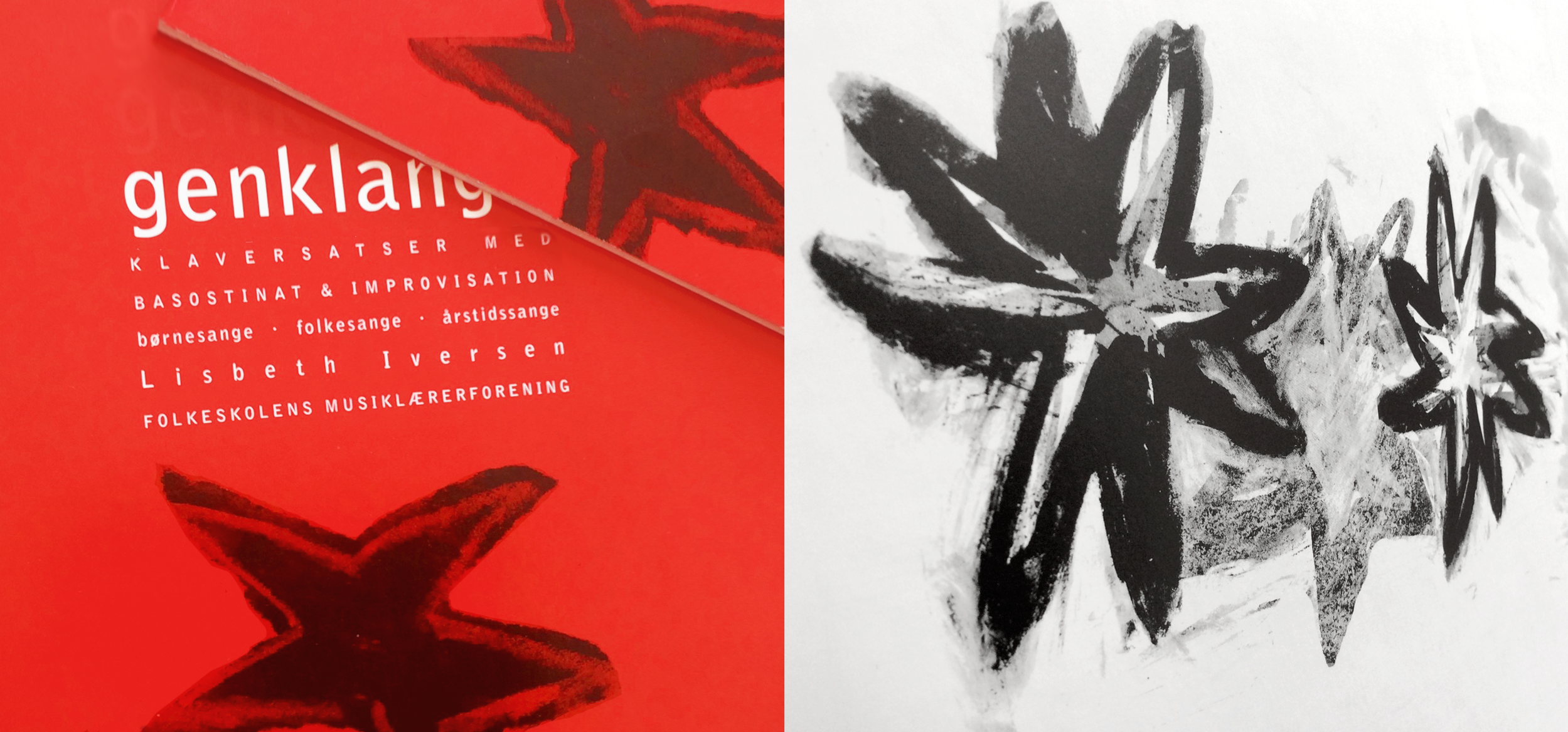 Lisbeth Iversen har lavet nye kompositioner over en række kendte sange. Nedenfor ses: Juletræet med sin pynt, Pjerrot sagde til månen, Jens Vejmand. QVI har stået for design og opsætning af 'Genklang et og to' og illustreret de to nodehæfter med sort-hvide illustrationer udført i blæk, oliestift og collage.